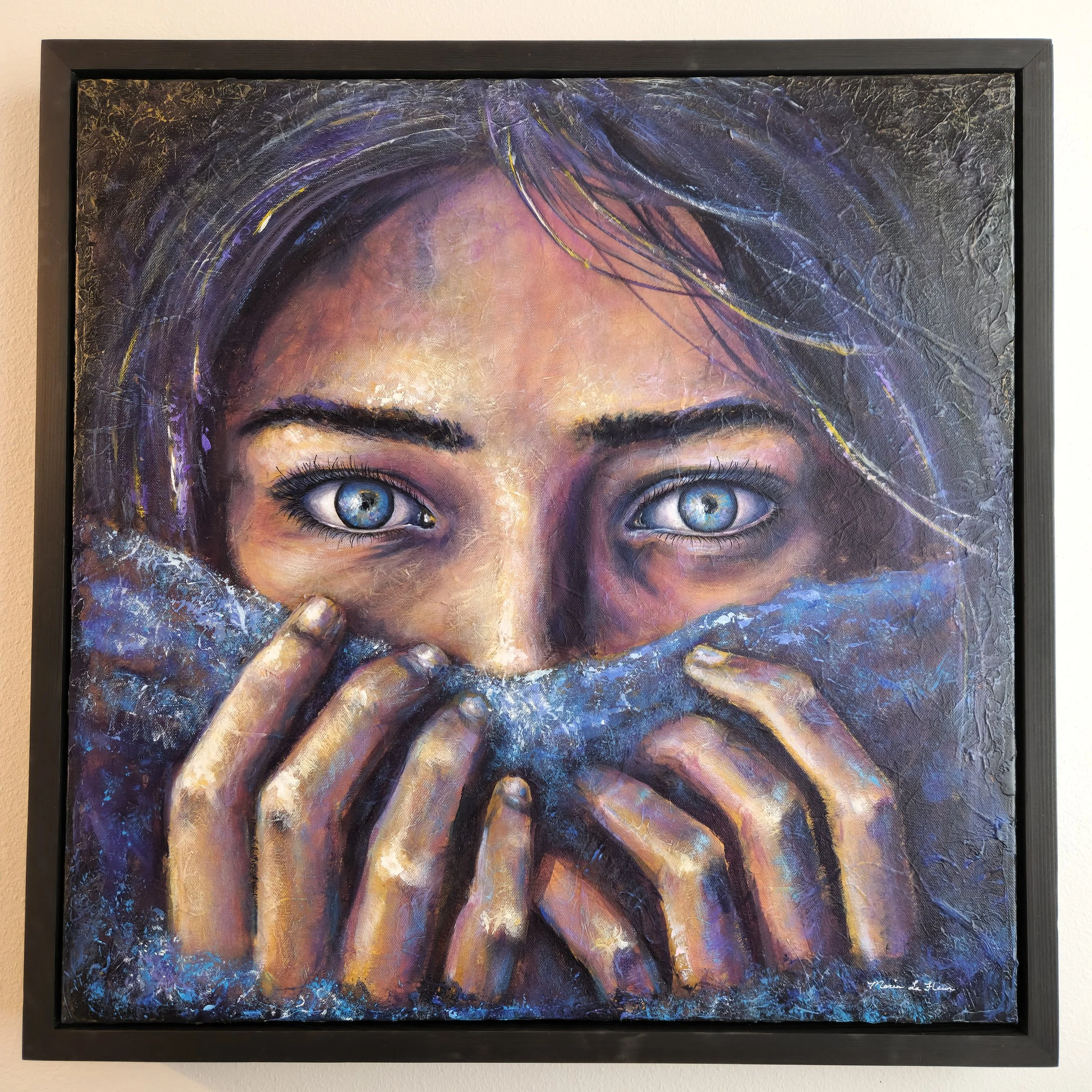 Acrylic on standard profile, wrapped canvas. Mounted inside a handmade, wooden frame, ready to hang. Certificate of Authenticity included.