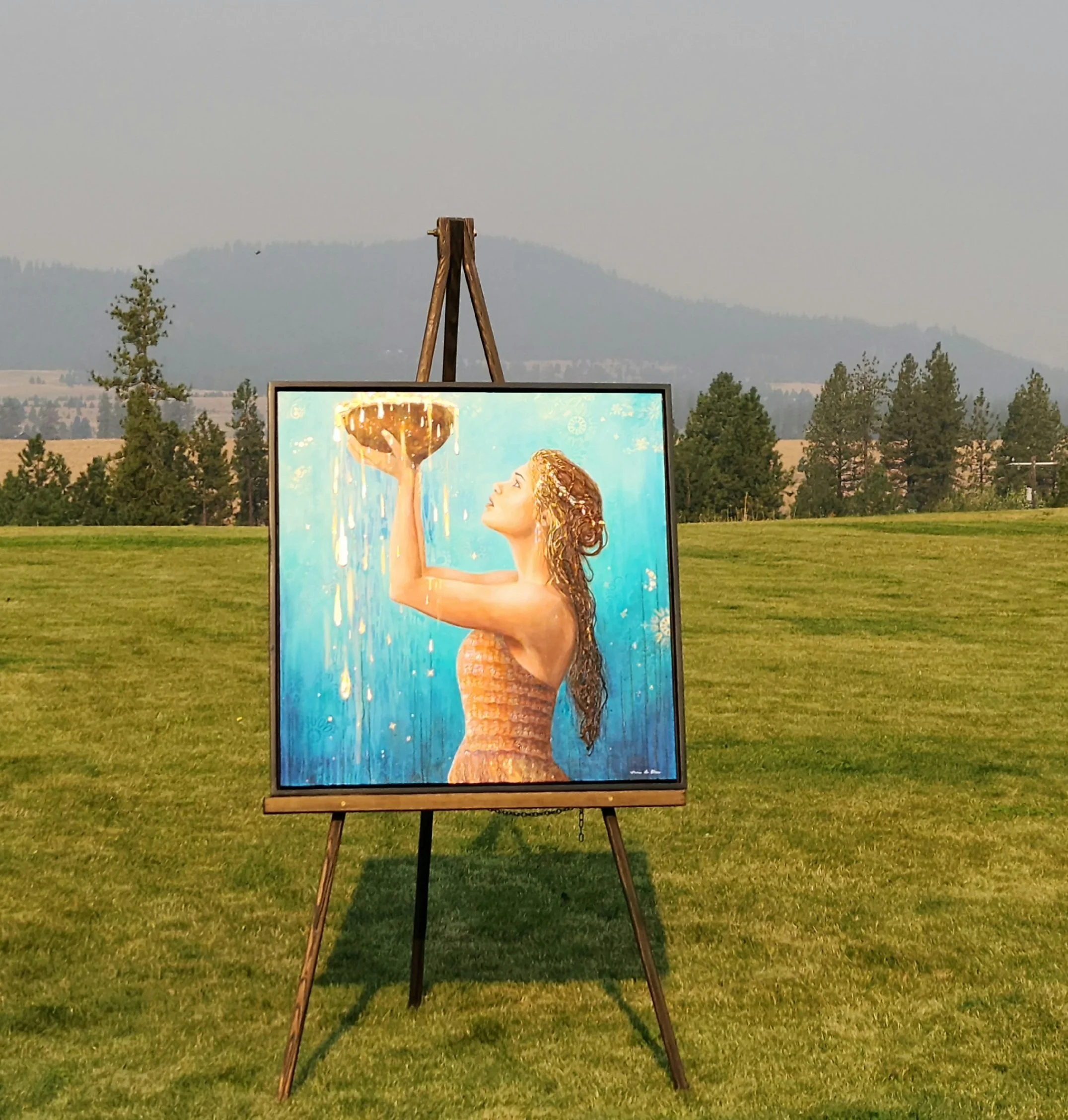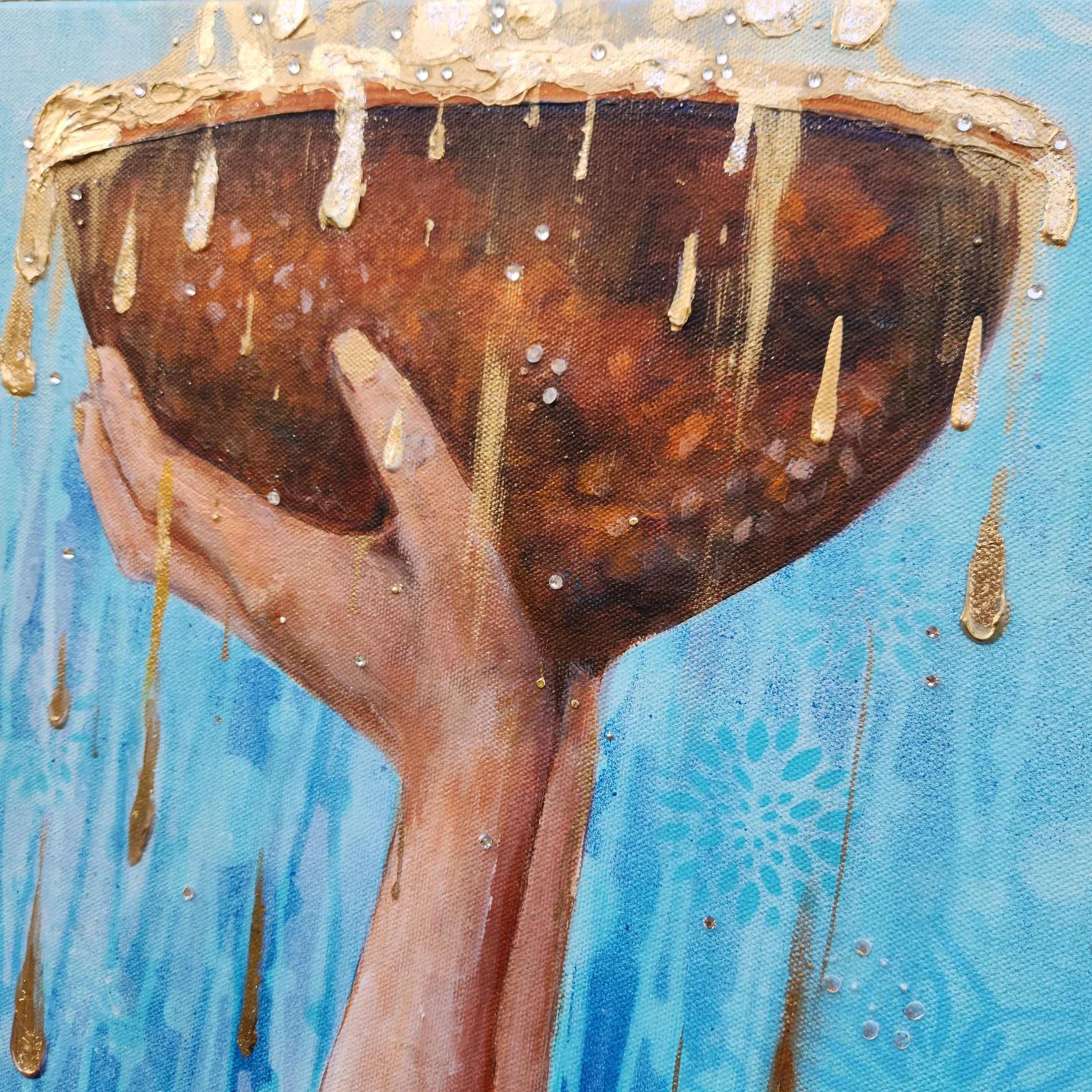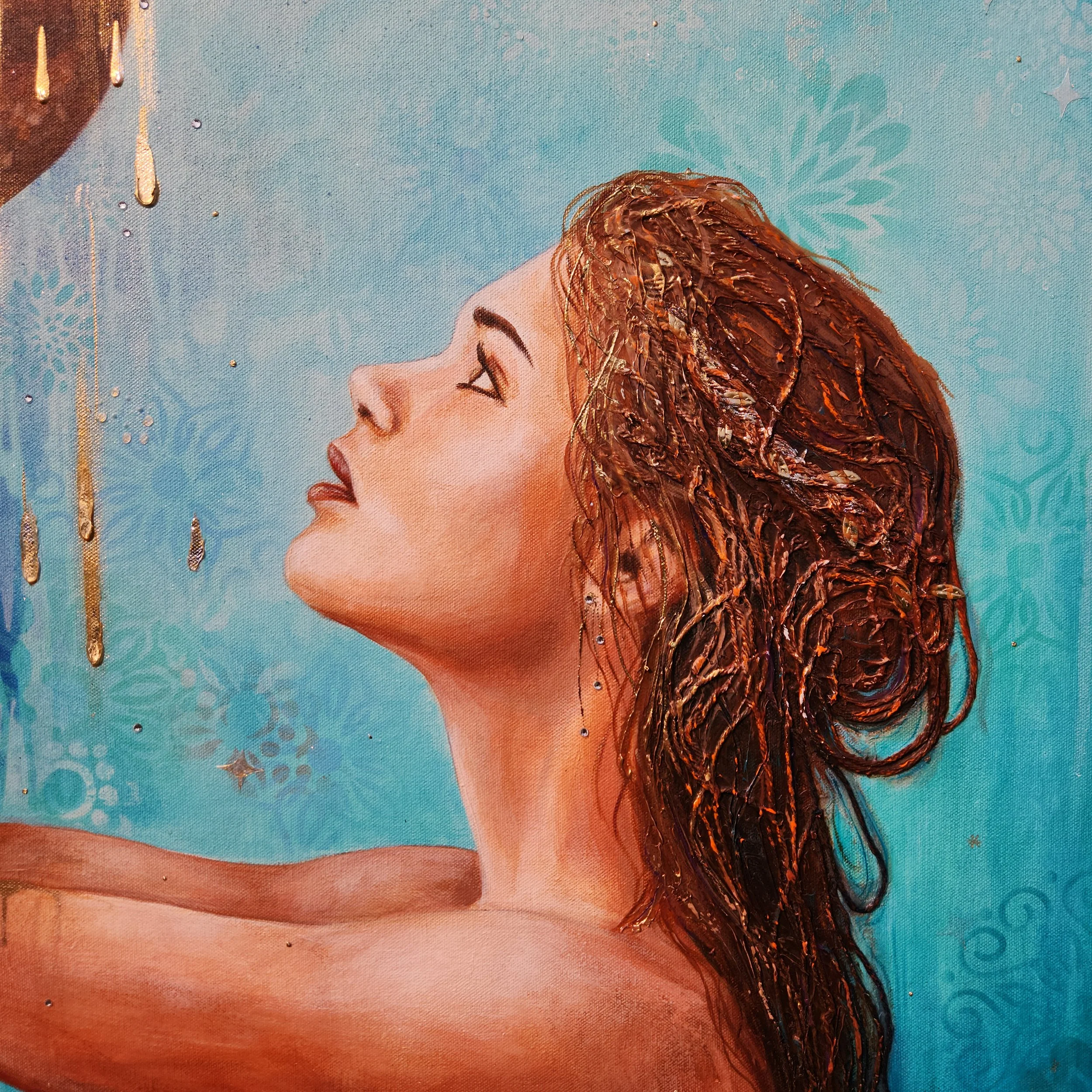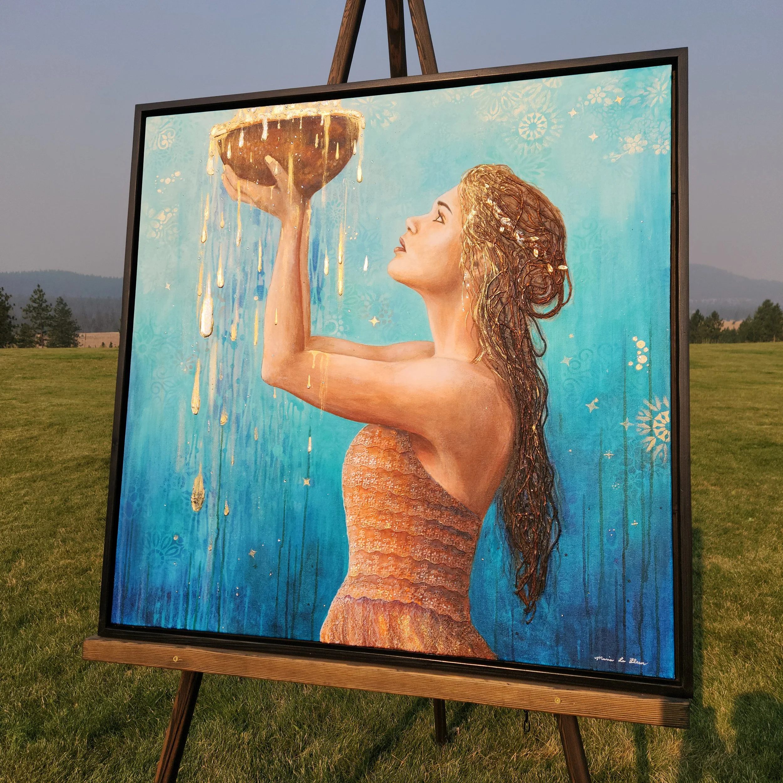 Acrylic and inks mixed media with silver highlights, on premium, gallery profile wrapped canvas. Mounted inside a handmade, wooden frame, ready to hang.
